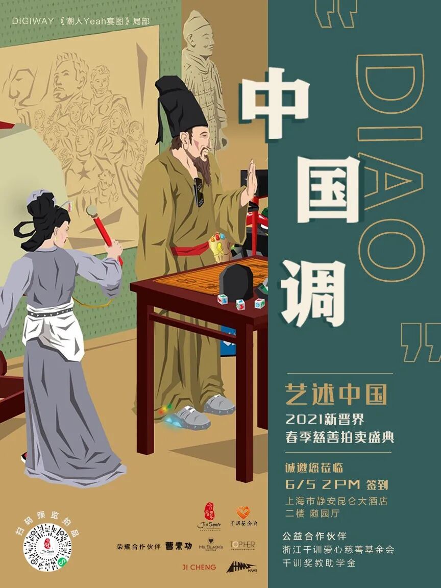 除了一系列当代大师精品,更有时下备受热捧的潮流艺术家如空山基、下田光、Digiway等。Digiway曾与“中华老字号”荣宝斋、“国货之光”华为等知名品牌跨界合作。此次慈善盛典Digiway倾情献上限量作品《潮人YEAH宴图》,帮助那些偏远山区的孩子们离梦想更进一步。